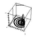 Ressler の Hyper Chaos のアトラクタを、4次元のハイパーキューブによる座標系で表示。すべての軸で適当に座標系を回転させている。